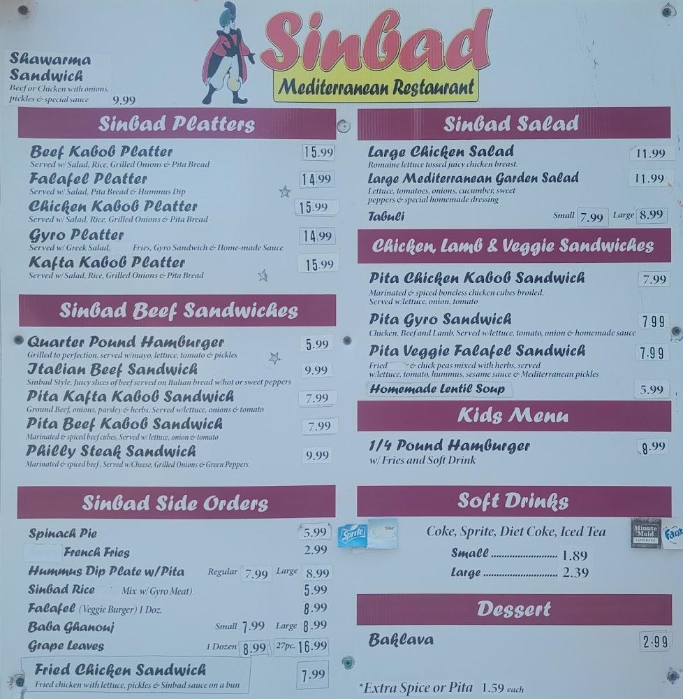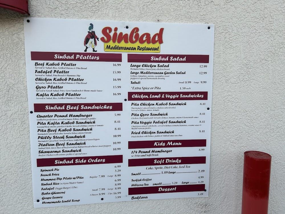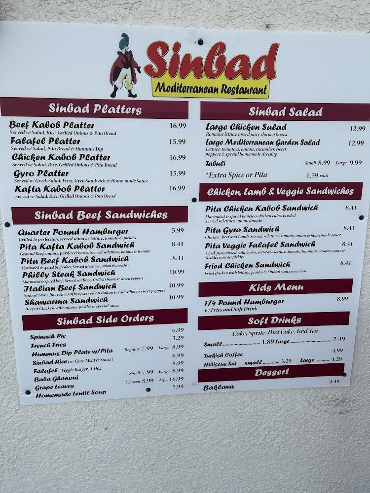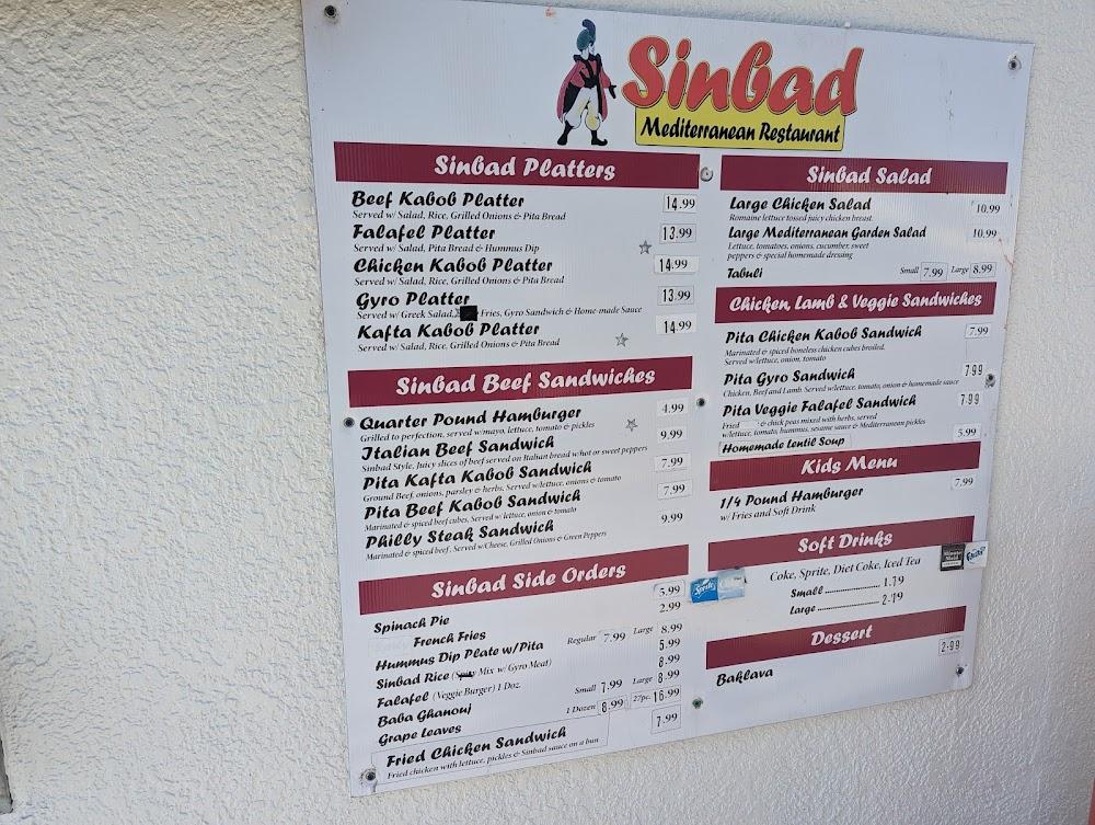 Sinbad's menu showcases a range of Mediterranean delights. It features platters, salads, sandwiches, and sides. Each dish is crafted with fresh ingredients and traditional recipes. Signature items include the gyros and a variety of kabob options, making it easy to please diverse palates. The chicken kabob platter stands out for its rich flavors, while the falafel platter offers a delightful vegetarian choice.